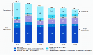 • Non-tax revenue is forecast to decline by 9.9% to RM72.7 billion, primarily due to a lower dividend contribution from Petronas, estimated at RM20 billion.