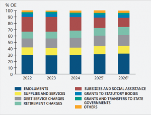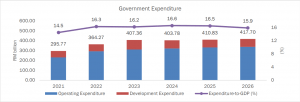 • Operating expenditure (OE) is projected at RM338.2 billion, increasing by 1% (2025: RM332.2 billion) due to higher emoluments on implementation of Phase 2 of the Public Service Remuneration