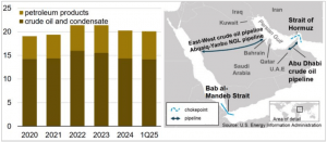 Figure 1: Volume of petroleum transported through Strait of Hormuz and Alternative Routes (Source: EIA)